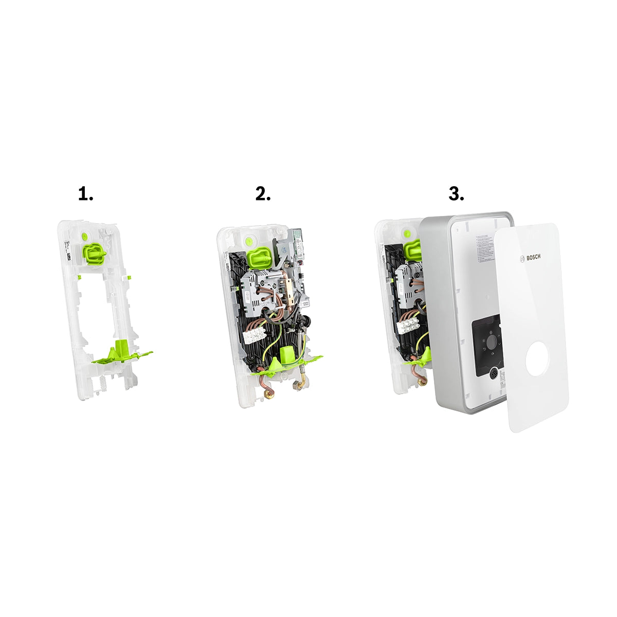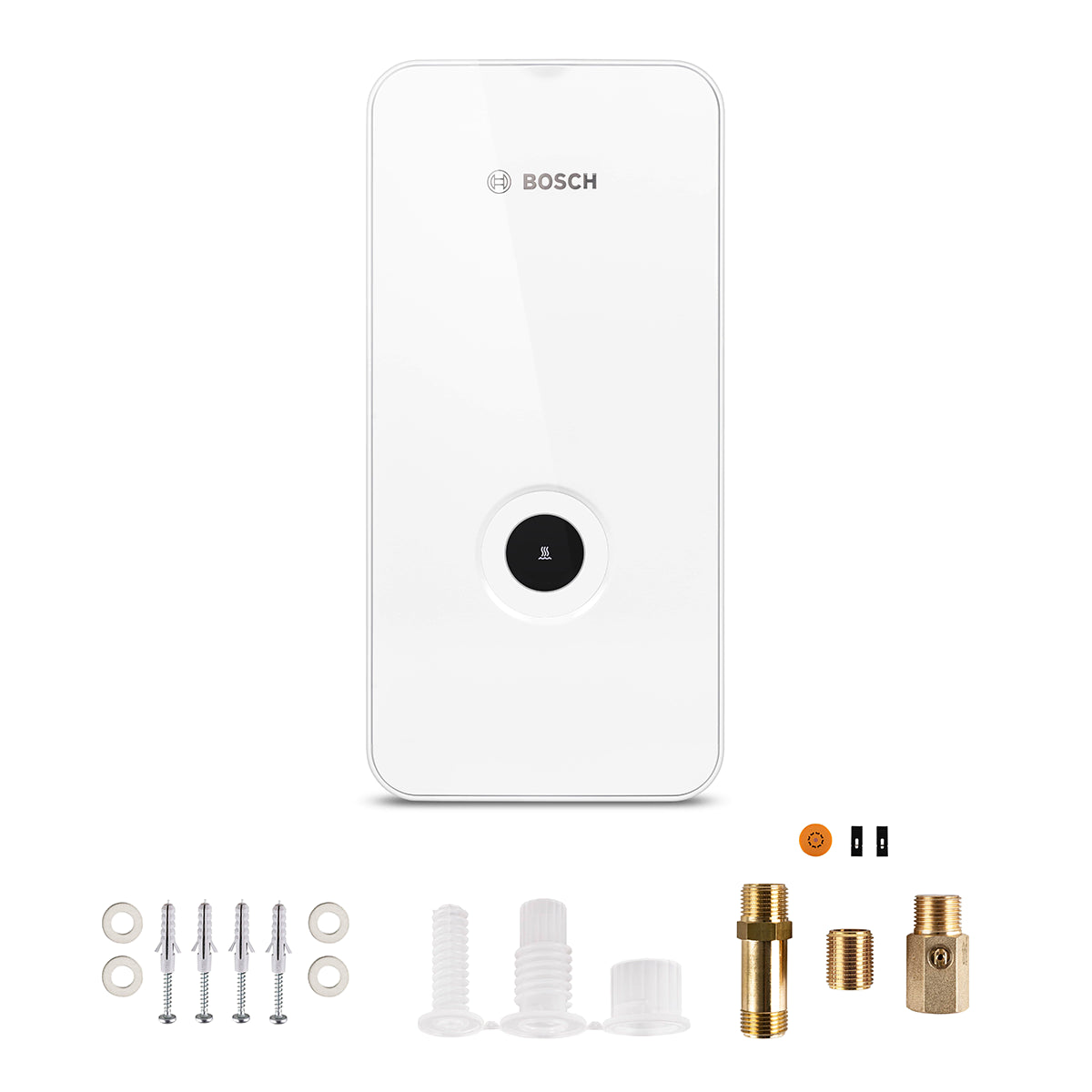 Der Bosch Tronic Line überzeugt mit seiner nur 11 cm schlanken Bauweise und einem modernen Design in weißer Glas-Optik. Mit wahlweise 21, 24 oder 27 kW Leistung liefert er zuverlässig warmes Wasser – perfekt für Küche, Bad oder Dusche.