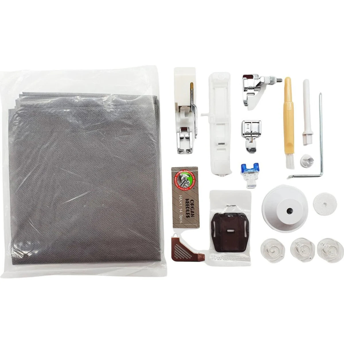 Die einfache Bedienung mit automatischem Nadeleinfädler, Fadenabschneider und Rückwärtsnähtaste macht die Maschine besonders anwenderfreundlich. Mit dem Freiarm lassen sich zudem Ärmel, Hosenbeine und andere Rundnähte mühelos bearbeiten.